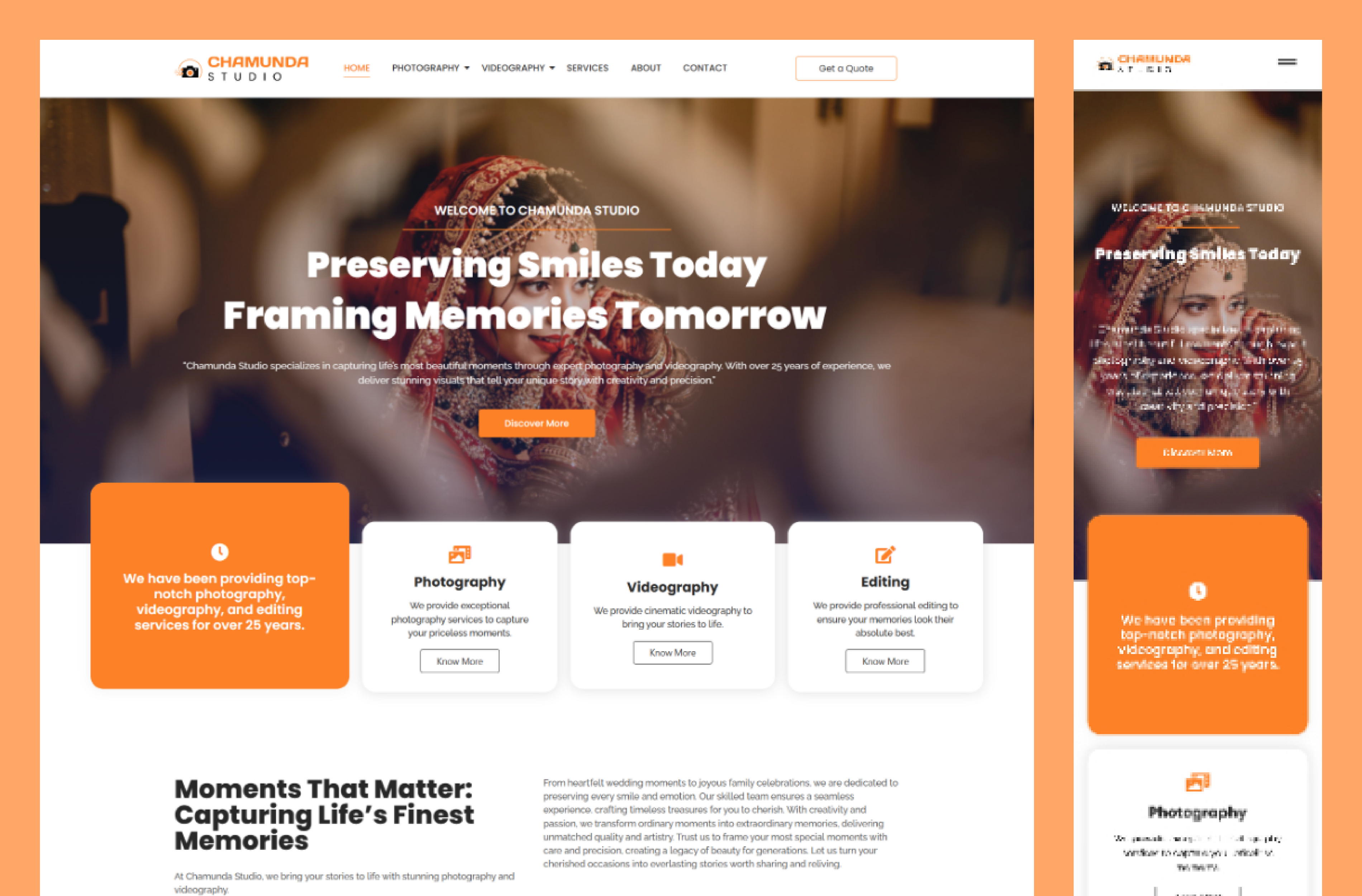 Chamunda Studio Bringing your moments to life with creativity and passion. Professional photography services for weddings, portraits, and events.